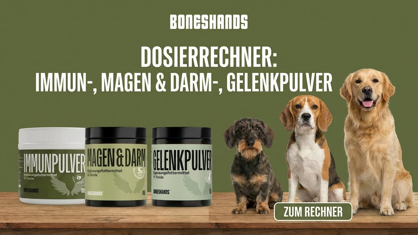 Our specially selected range of Bones Hands nutritional supplement powders can help keep your pet healthy and active. Whether for strong joints, a shiny coat, support with allergy-related symptoms, or for more energy and zest for life – our products are optimally tailored to the needs of dogs and cats and can sustainably promote your pet's well-being.